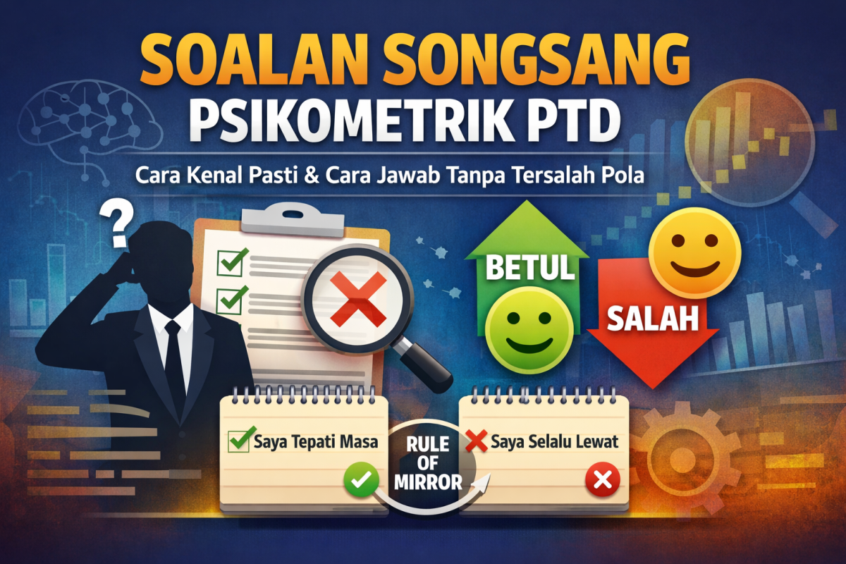 Ramai calon masuk ujian psikometrik PTD M9 dengan satu strategi mudah: pilih jawapan yang “nampak baik”. Namun, psikometrik bukan ujian hafalan atau ujian fakta. Ia berfungsi melalui konsep self-report — sistem membaca personaliti anda berdasarkan apa yang anda laporkan sendiri tentang diri anda melalui jawapan yang dipilih. Inilah sebab utama kenapa ada calon yang rasa […]